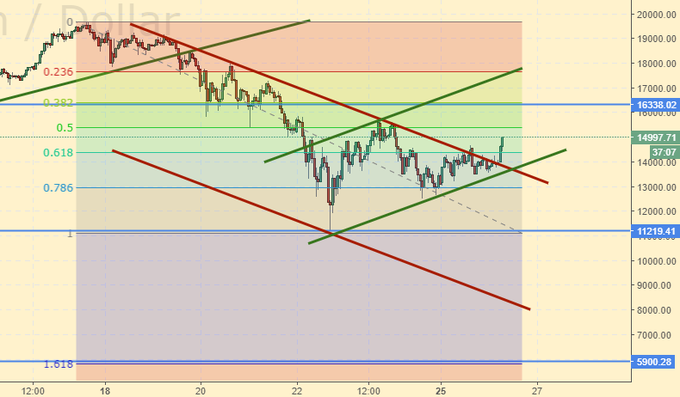 Покупка: при касании 14000. Стоп: 13000. Цель: 25000!