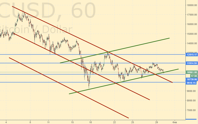 На рынке наблюдаем трудовые будни. Сходили в одну сторону, потом в другую, потом снова решили идти туда, куда шли ранее. Пока мы не опустились ниже 10800 продавать не стоит. А вот если данное событие произойдет, это возвестит мир о том, что мы снова смотрим на 6000. На текущих уровнях ничего предпринимать не нужно. Если будет рост выше 12000 можно вновь купить.