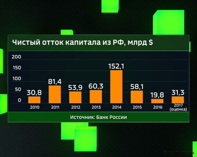 В марте 2019 г. Банк России повысил оценку чистого оттока капитала из РФ в 2018 г. до $76 млрд с $67 млрд и ухудшил прогноз на текущий год до $35 млрд с $20 млрд, а на 2020 г. — до $17 млрд с $13 млрд, в 2021 г. — до $13 млрд с $11 млрд.