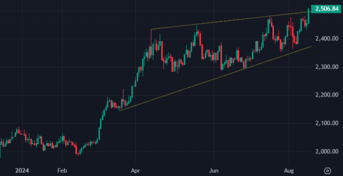 В пятницу цена спотового золота подскочила на 2%, впервые в истории превысила $2500 за унцию и смогла закрыть неделю выше данной отметки. Непосредственным поводом для столь сильной динамики послужило заметное ослабление доллара по всему спектру рынка.