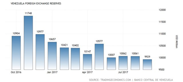 В общей сложности, согласно Torino Capital, внешний долг Венесуэлы составляет $143 млрд, долг по облигациям составляет примерно $52 млрд, а международные резервы Венесуэлы, включая золото страны, сократились до $10 млрд, и это 15-летний минимум.