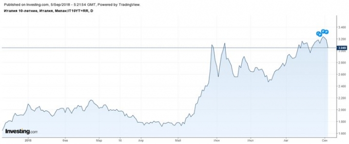 Турбулентность на развивающихся рынках служит для инвесторов дополнительным доводом в пользу осторожного отношения к облигациям Италии, которая и так считается слабым звеном Европы на фоне планов популистского правительства по бюджету.