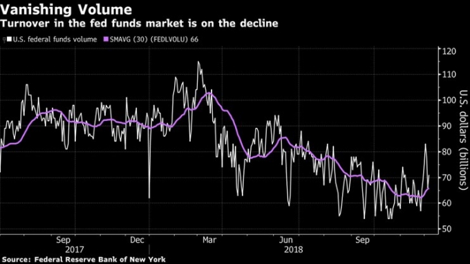 Суточный оборот, который когда-то исчислялся сотнями миллиардов долларов, в этом квартале упал в среднем до $64 млрд, свидетельствуют данные ФРБ Нью-Йорка. В результате группа спонсируемых государством ипотечных кредиторов оказалась главенствующей на рынке, непреднамеренно получив чрезмерное влияние на уровень ставки федерального финансирования.