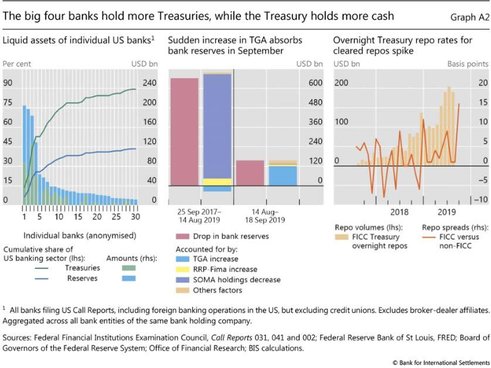 Точная причина краха рынка РЕПО остается неясной. Называют такие факторы, как крупные квартальные налоговые платежи, крупные расчеты по казначейским бумагам и так далее. Однако в BIS считают, что главным факторов все же стала растущая зависимость нормального функционирования рынка репо от крупнейших банков США.