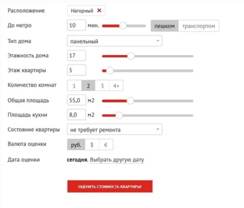 Выберем среднюю двушку, не великолепную, но и не халупу. Для этого воспользуемся сервисом по оценке квартир.