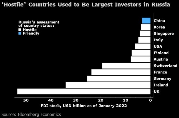 «Недружественныые» страны раньше были крупными инвесторами в Россию