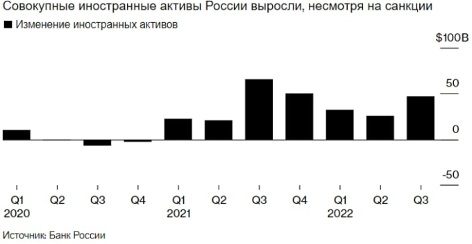 «Банк России в этом году потерял доступ к половине своих международных резервов, но это не помешало стране продолжать накапливать международные активы. Поскольку центральный банк прекратил операции на открытом рынке, вмешался частный сектор».