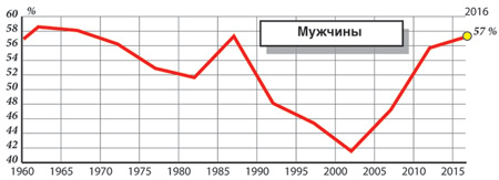 Ранее Всемирный банк сообщил, что в России по состоянию на 2016 год не доживают до 65 лет около 43% мужчин и 17,5% женщин. Как уверяют чиновники, ситуация улучшается, и в 2034 году люди будут жить дольше, а значит, и доживать до пенсии будет больше граждан. Правда, данные Всемирного банка зарождают некоторые опасения. Из них следует, что в 2016-м ситуация для мужчин была ничуть не лучше, чем в 1960-м, когда до 65 лет доживали тоже около 57% мужчин.