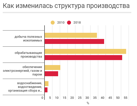 Хотя зависимость экономики от добычи сырья действительно выросла, в будущем она снизится, считает Сальников. С одной стороны, из-за ограничений внешнего спроса на сырье, высокой конкуренции, перечисляет он, с другой – растет потенциал других сегментов экономики: химического, лесобумажного и агропромышленного комплексов.