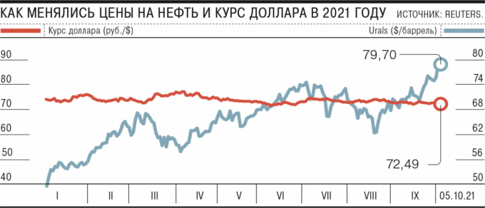 Резкий рост цен на нефть на мировом рынке привел к укреплению российской валюты. На основной сессии Московской биржи в начале дня 4 октября курс доллара превышал отметку 73 руб./$. Однако после 17:00 откатился до 72,4 руб./$, минимальному значению с середины сентября. Курс евро опускался до отметки 84,15 руб./€.