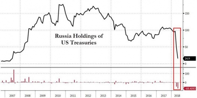 Всего за два месяца Россия практически полностью избавилась от амерканского долга. Очень похоже, что основной мотив — политика и санкции. Россия не хочет, чтобы ее резервы были заморожены или еще что-то в этом роде.