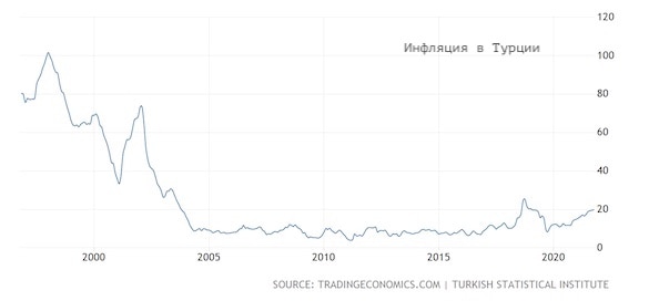 Турция приобрела горький опыт инфляции, превышавшей 100% в год, в начале 2000х после двух десятилетий агрессивной госполитики, когда правительство пыталось стимулировать экономику с помощью гигантского дефицита бюджета, а банки полагались на значительные объемы краткосрочного долга.