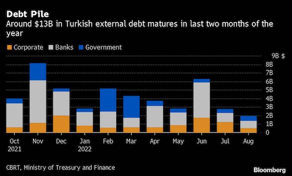 В ноябре у турецких компаний и банков наступает срок расплаты на займам на 8 млрд долларов займов — вдвое больше, чем в октябре. В декабре сумма уменьшится до 5 млрд долларов, но все же останется выше средних объемов за последние 10 месяцев.