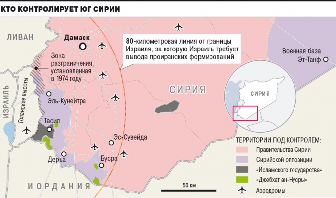 До недавнего времени юго-западная зона деэскалации считалась самой эффективной. Однако 19 июня проправительственные силы Сирии начали операцию по возвращению юга страны под контроль Дамаска, и зона деэскалации де-факто перестала существовать. Однако по сравнению с аналогичным развитием событий в Восточной Гуте заявления американцев были очень сдержанны. Они фактически смирились с тем, что Башар Асад восстанавливает контроль над Сирией. Единственный принципиальный вопрос для США — активность Ирана в этой стране и в регионе в целом. 1 июля Джон Болтон заявил, что в Хельсинки президенты затронут тему «вывода иранских войск из Сирии». И если свести заявления всех американских источников за последние недели, то вырисовывается формула: Иран в обмен на Башара Асада (по крайней мере его правления на переходный период). Однако в Москве опровергают возможность сделок по Сирии, особенно в том, что касается Ирана. Как заявил Дмитрий Песков, «вряд ли реалистично», чтобы две страны принимали решения за третью.