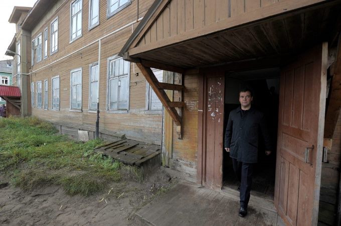 Дмитрий Медведев оценил удобства в ветхом доме в Нарьян-Маре. Сергей Гунеев/РИА Новости
