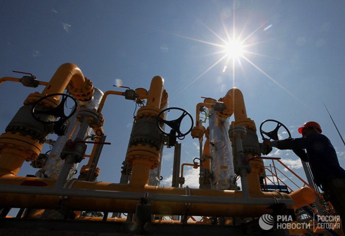 Рабочий у блока сепарационных установок на газораспределительной станции компании ОАО «Газпром»