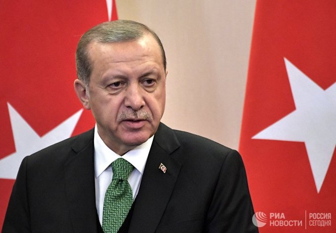 Президент Турции Реджеп Тайип Эрдоган во время совместной пресс-конференции по итогам встречи с президентом РФ Владимиром Путиным