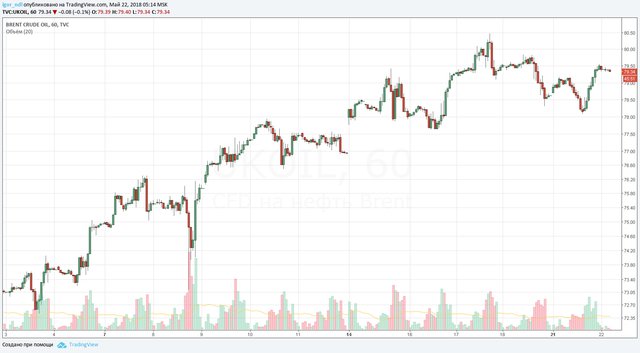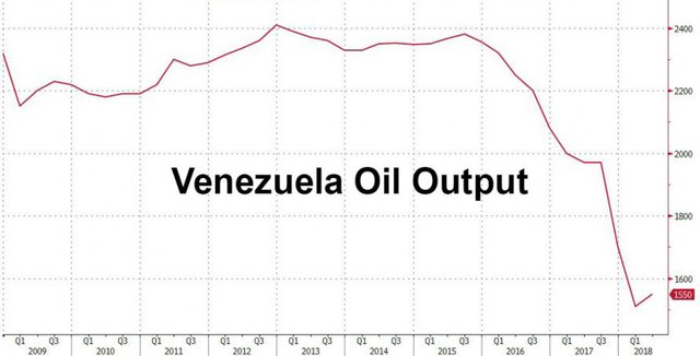 Ситуация усугубляется еще и тем, что экономика страны на 96% зависит от нефти, но, как было сказано выше, добыча в стране стремительно снижается. Только за прошлый год она сократилась на 33%. Кстати, во многом из-за этого, а также из-за геополитической напряженности на Ближнем Востоке, цены на нефть подобрались к отметке $80 за баррель — максимуму с конца 2014 г.