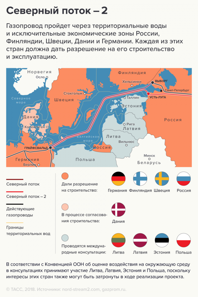 В августе Nord Stream 2 подал заявку на маршрут газопровода в Дании в исключительной экономической зоне к северо-западу от Борнхольма — это альтернативный маршрут, который не проходит через территориальные воды королевства. Это не отменяет заявку, поданную в апреле 2017 года. Nord Stream 2 считает, что первый документ предусматривает оптимальный маршрут газопровода в датских водах, который остается предпочтительным.