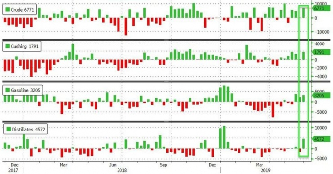 Отчет Минэнерго страны показал существенный рост по всем показателям: нефть, бензин, дистилляты.