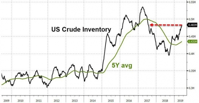 При этом сами запасы в Штатах находятся на максимуме с 2017 г. и значительно превышают среднее значение за 5 лет.