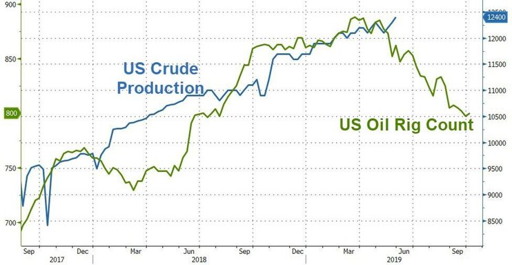 Ну и вдобавок ко всему добыча нефти в Штатах бьет очередные рекорды, несмотря на продолжающееся снижение числа буровых установок.
