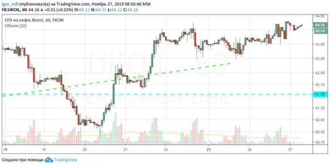Баррель смеси Brent стоит уже $64,20, и пока не похоже, что восходящее движение на этом остановится.