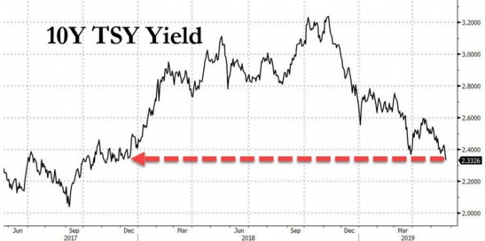 Стоит добавить, что накануне паника захлестнула практически все рынки. Доходности 10-летних трежерис рухнули до 2,322%, что является минимальным значением с декабря 2017 г. Таким образом, доходности этих облигаций опустились даже ниже ставки по федеральным фондам.