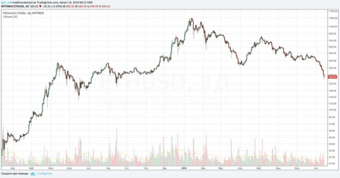 Цена эфира опустилась до отметки $267. Таким образом, всего за сутки курс электронной наличности снизился почти на 17%. По мнению экспертов, такая динамика связана с падением интереса к первичному предложению монет, ведь большинство ICO проходят как раз на базе блокчейна Ethereum.