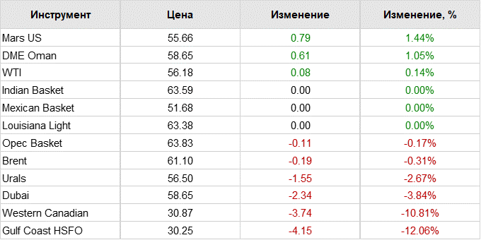 Фьючерс на нефть WTI на январь на электронных торгах Нью-йоркской товарной биржи (NYMEX) к этому времени подорожал на $0,2 (0,36%) — до $56,16 за баррель. По итогам предыдущей сессии контракт вырос в цене на $0,79 (1,43%), до $55,96 за баррель.