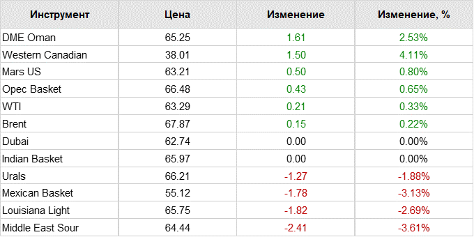 Нефть. Цены на сорта. Данные на 03.04.2018