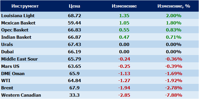 Нефть. Цены на сорта. Данные на 05.02.2018