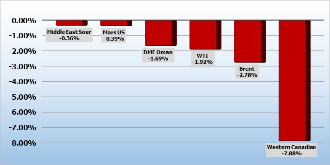 С начала недели Brent подешевела на 1% WTI — на 0,6%.