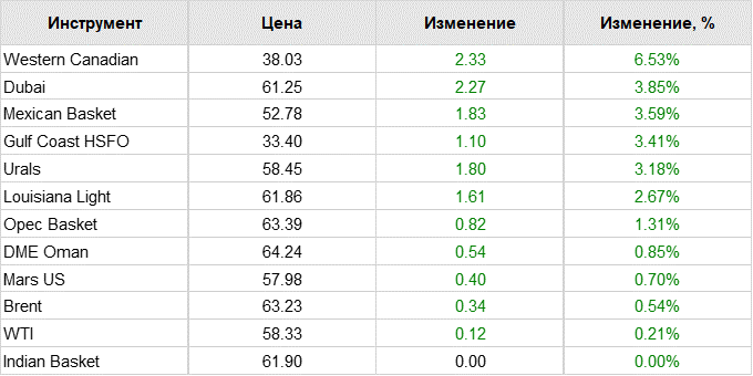 Нефтяные котировки незначительно снижаются в начале торговой сессии в последний рабочий день уходящей недели. По данным торгов, к 05.40 по московскому времени цены на нефть североморского сорта Brent снижаются на 0,08%, до 63,23 долларов за баррель. Стоимость бочки западнотехасской нефти WTI к этому времени уменьшилась на 0,17%, до 58,33 долларов.