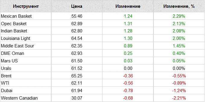 Нефть. Цены на сорта. Данные на 07.03.2018