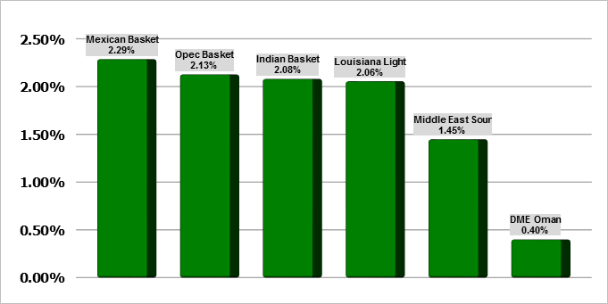 Что касается других товаров, торгующихся на ICE, фьючерс на нефть Brent с поставкой в мае вырос на 0,38%, достигнув отметки 65,79 долл. за баррель, а разница в цене между контрактами на нефть Brent и нефть WTI составила 3,20 долл. за баррель.