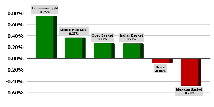 По фиксингу на 08:45 по московскому времени, стоимость июльских фьючерсов на нефть эталонной марки Brent выросла 0,939% на и составляет $75,58 за баррель. В то же время баррель нефти WTI на июнь вырос в цене на 0,881% — до $70,34.