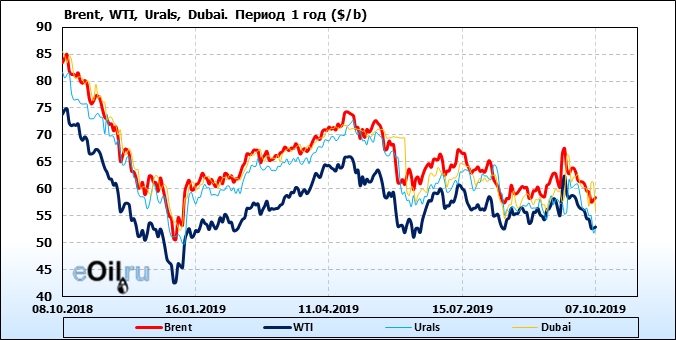 Нефть. Цены на сорта. Данные на 07.10.19