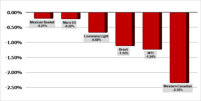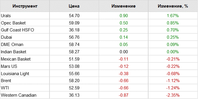 По данным торгов, к 05.20 по московскому времени североморская нефть дешевела к закрытию предыдущей сессии на 0,33%, до 58,05 долларов за баррель. Бочка WTI дешевела на 0,36%, до 52,44 долларов.