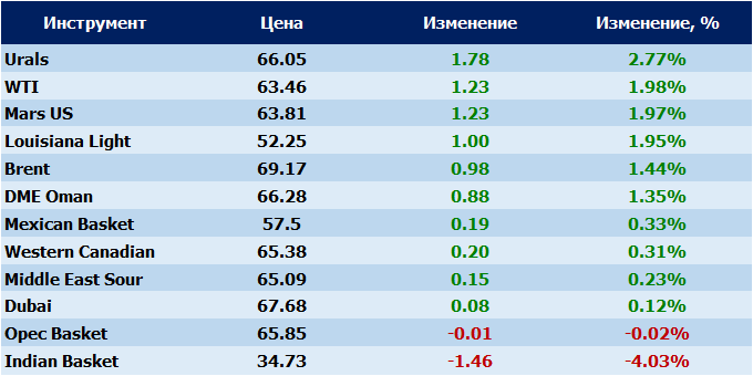 Мартовские фьючерсы на нефть марки Brent к 7:43 мск увеличились на 34 цента (0,5%) — до $69,16 за баррель. Brent превысила отметку в $69 впервые с мая 2015 года.