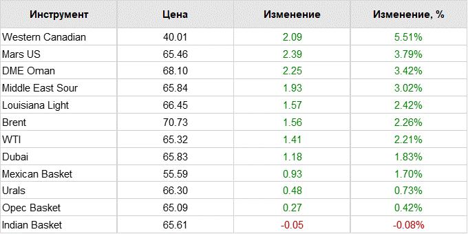Июньский фьючерс Brent потерял в цене 0,38% до 70,77 доллара за баррель, майский фьючерс WTI снизился на 0,23%, до 65,36 доллара за баррель.