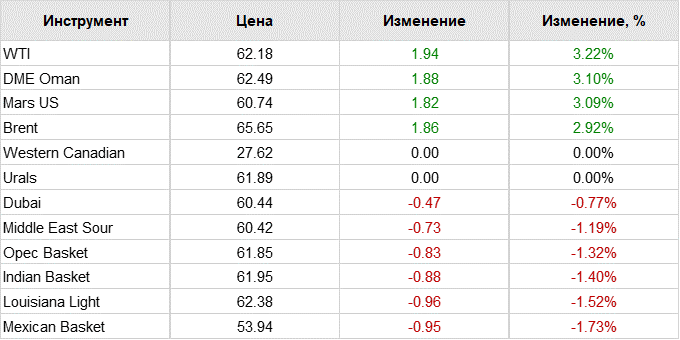 Нефть. Цены на сорта. Данные на 12.03.2018