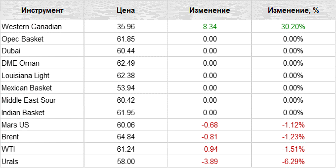 Нефть. Цены на сорта. Данные на 12.03.2018
