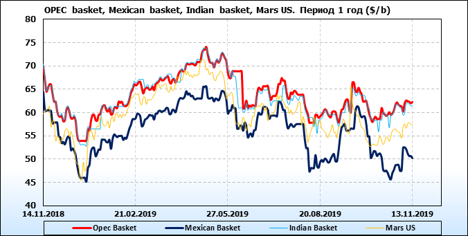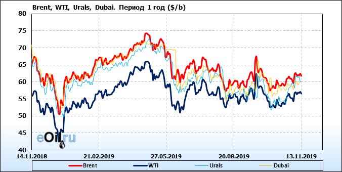 Торги по нефти 12 ноября завершились снижением на 0,38%. На нефтяной рынок оказывает давление беспокойство по поводу замедления экономического роста и спроса на нефть из-за торговой войны между США и Китаем.