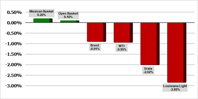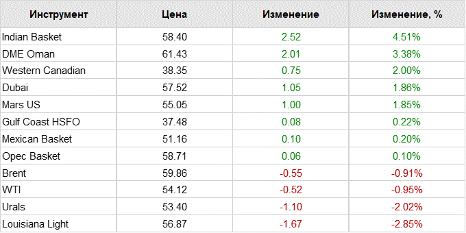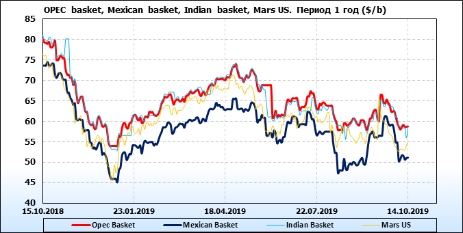 Фьючерс на нефть WTI на ноябрь на электронных торгах Нью-йоркской товарной биржи (NYMEX) к этому времени подешевел на $0,31 (0,57%) — до $54,39 за баррель. По итогам предыдущей сессии контракт упал в цене на $1,15 (2,15%), до $54,7 за баррель.