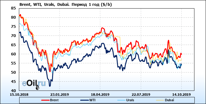 Цены на нефть опускаются в понедельник после скачка почти на 4% по итогам прошлой недели на фоне инцидента с иранским танкером в Красном море, а также сообщений о промежуточном торговом соглашении между США и Китаем. Стоимость декабрьских фьючерсов на нефть Brent на лондонской бирже ICE Futures к 8:26 мск составляет $60,19 за баррель, что на $0,32 (0,53%) ниже уровня закрытия предыдущей сессии. По итогам торгов в пятницу цена этих контрактов выросла на $1,41 (2,39%), до $60,51 за баррель.