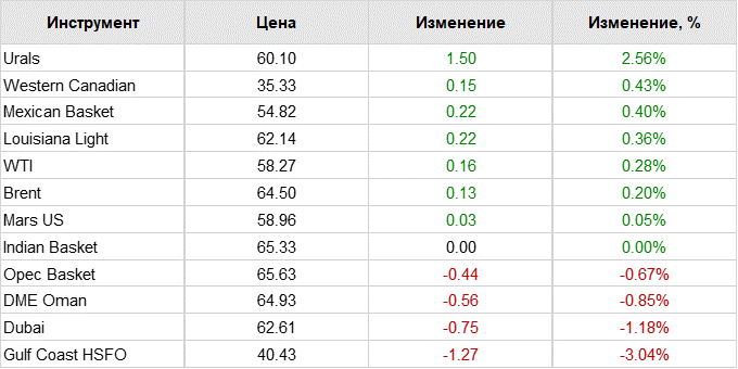 По состоянию на 8.01 мск цена мартовских фьючерсов на североморскую нефтяную смесь марки Brent росла на 0,69%, до 64,44 доллара за баррель, февральских фьючерсов на нефть марки WTI — на 0,73%, до 58,23 доллара за баррель.
