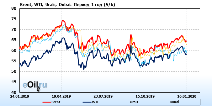 Нефть. Цены по сортам на 16 января 2020