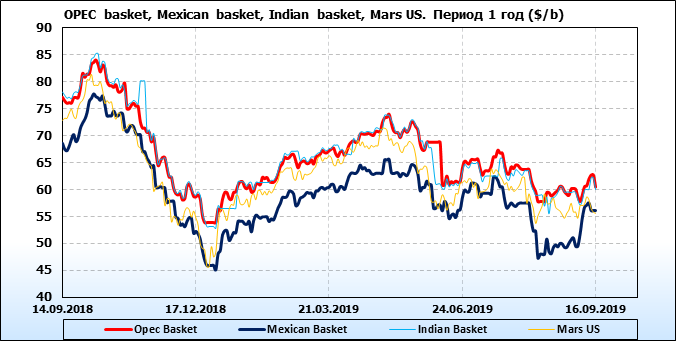 Нефть. Цены на сорта. Данные на 16.09.19