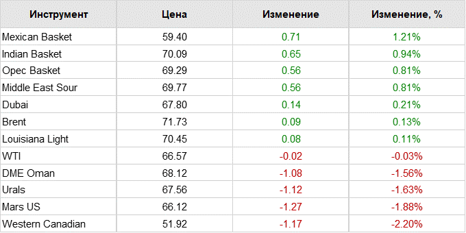Нефть. Цены на сорта. Данные на 17.04.2018